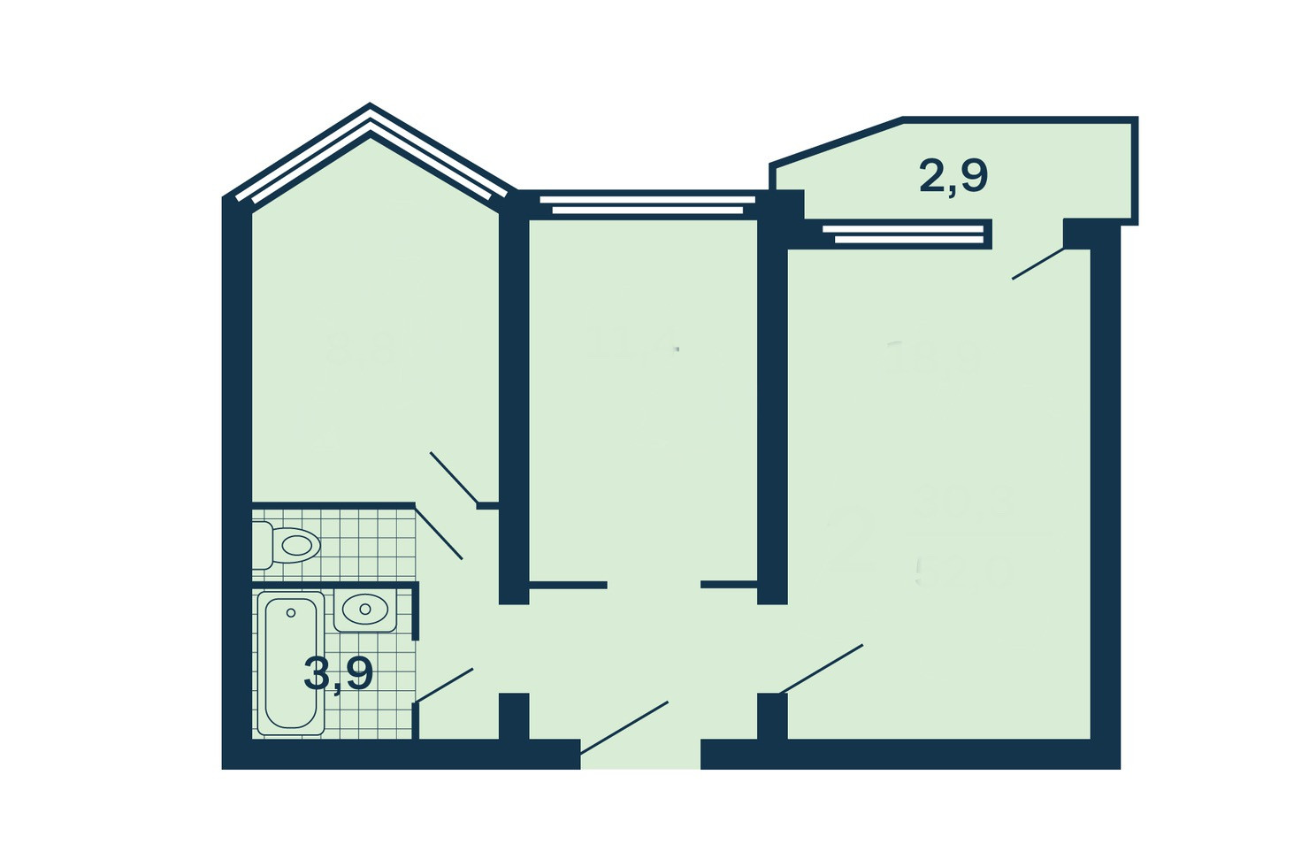 Жилая площадь 30.6 м2