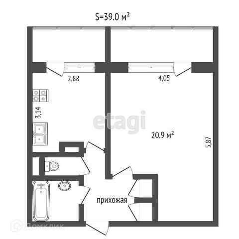 Общая площадь 43 м2
