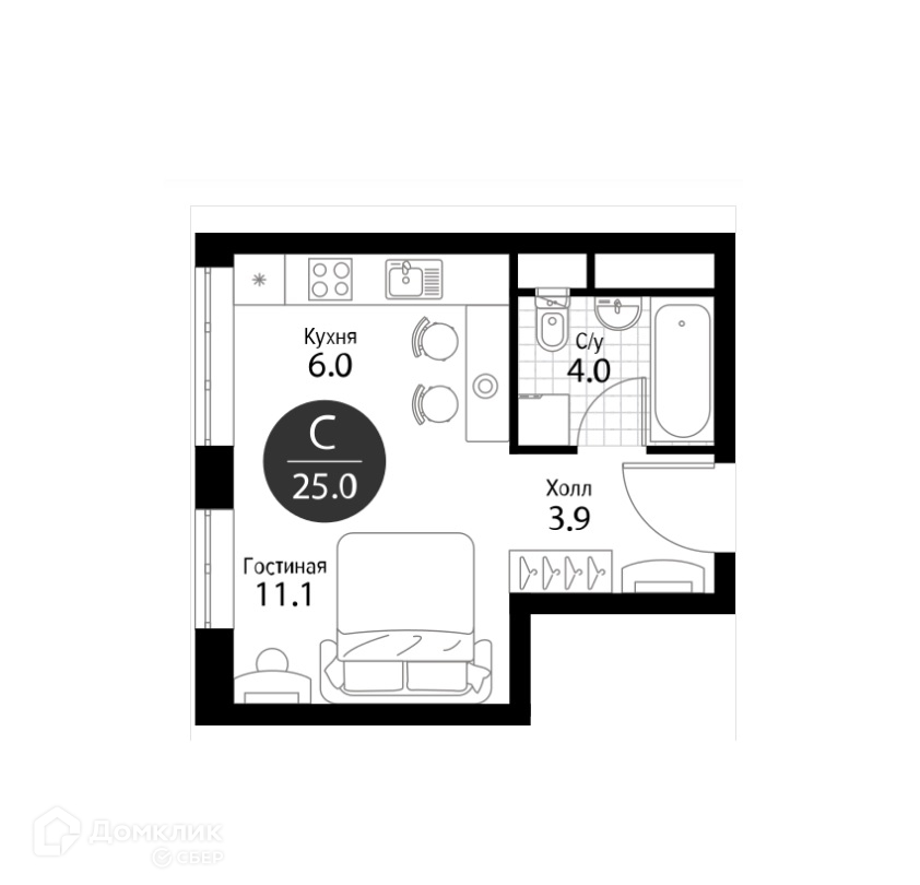 Общая площадь 24.7 м2