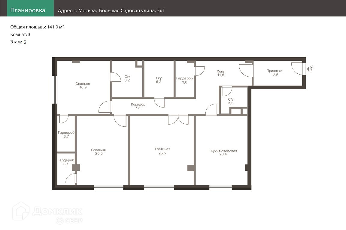 Общая площадь 141.8 м2
