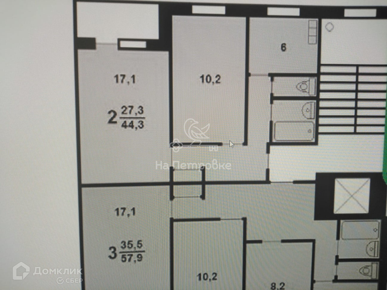 Общая площадь 44.3 м2