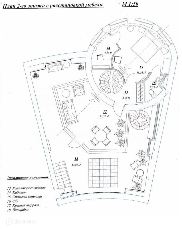 2 этаж - мастер-спальня 18.15 кв.м., небольшой кабинет или будуар и санузел.