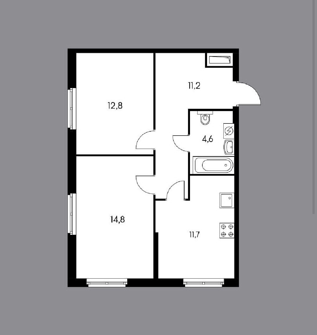 Общая площадь 54.5 м2