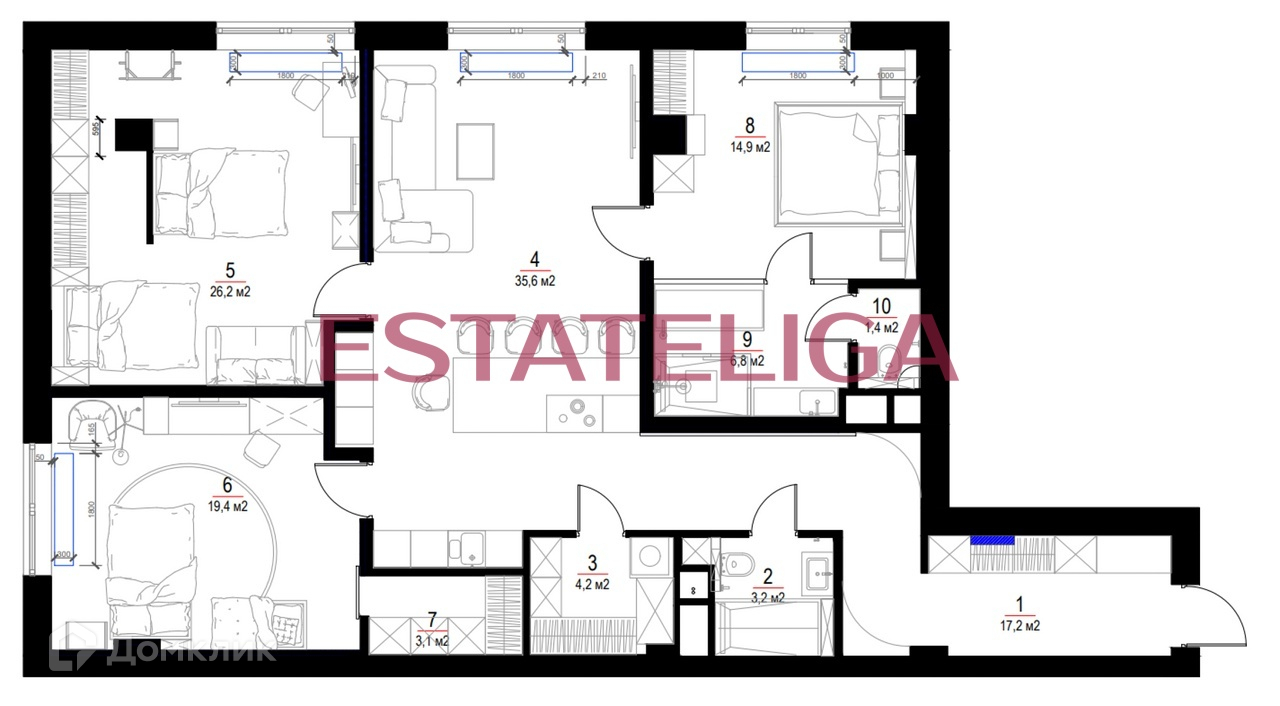 Id 27056. В продаже 4-х комнатные апартаменты, с выполненной предчистовой отделкой в квартале Сады Пекина.