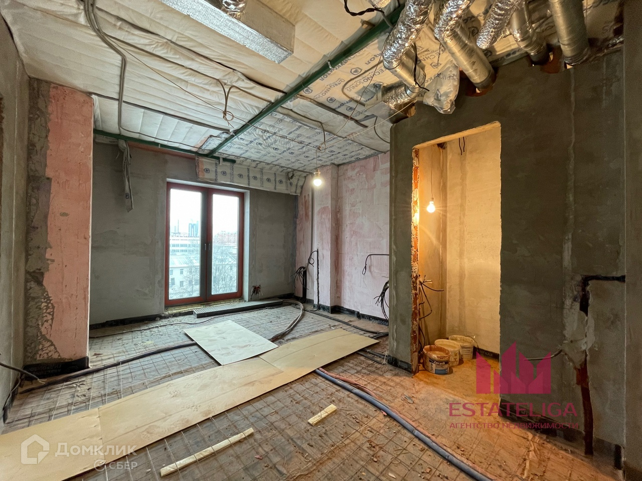 Выполнены все основные черновые работы, сделана шумоизоляция всех стен, межкомнатных перегородок, пола и потолка, выведена вся проводка, заменены все трубы и отопительные приборы, разведен теплый пол, установлена и разведено кондиционирование, заменили окна.