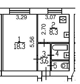 Общая площадь 34.8 м2