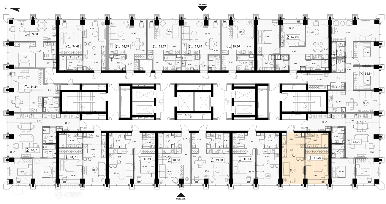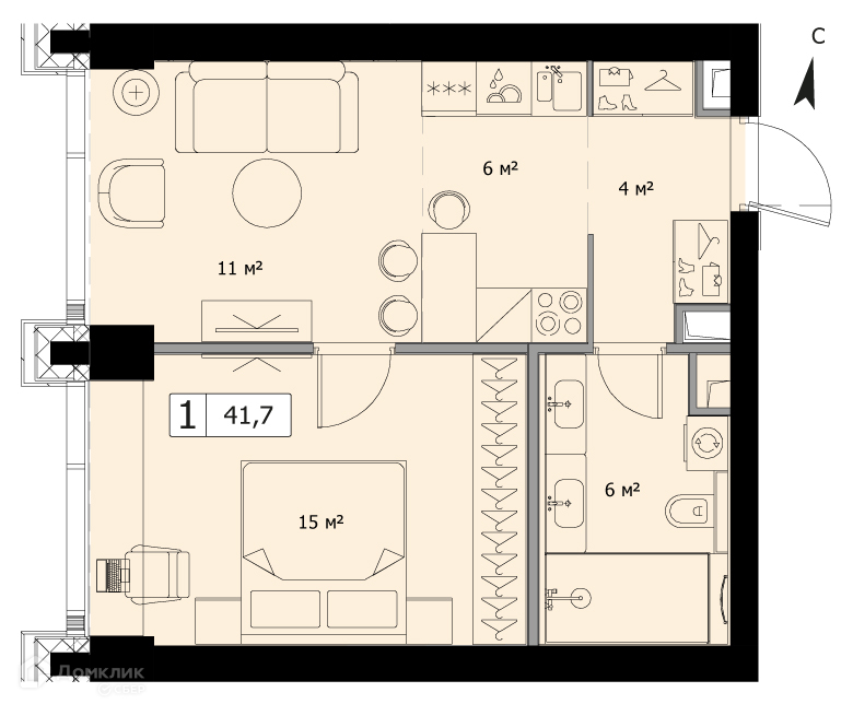Общая площадь 41.7 м2