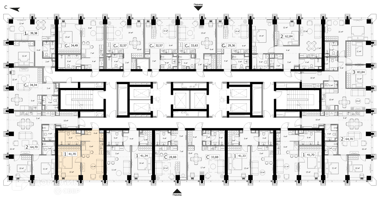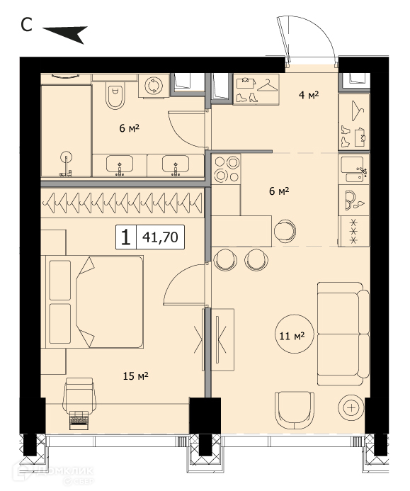 Общая площадь 41.7 м2