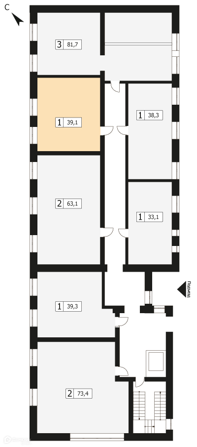 Количество комнат 1