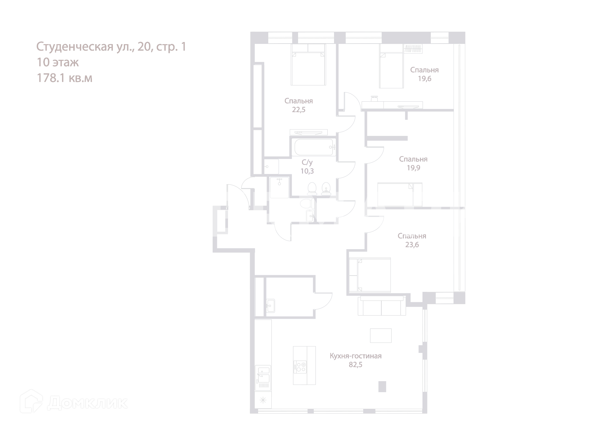 5-комнатная квартира, 178.1 м2, этаж 10 / 10, на продажу в Москве, Студенческая улица, 20к1