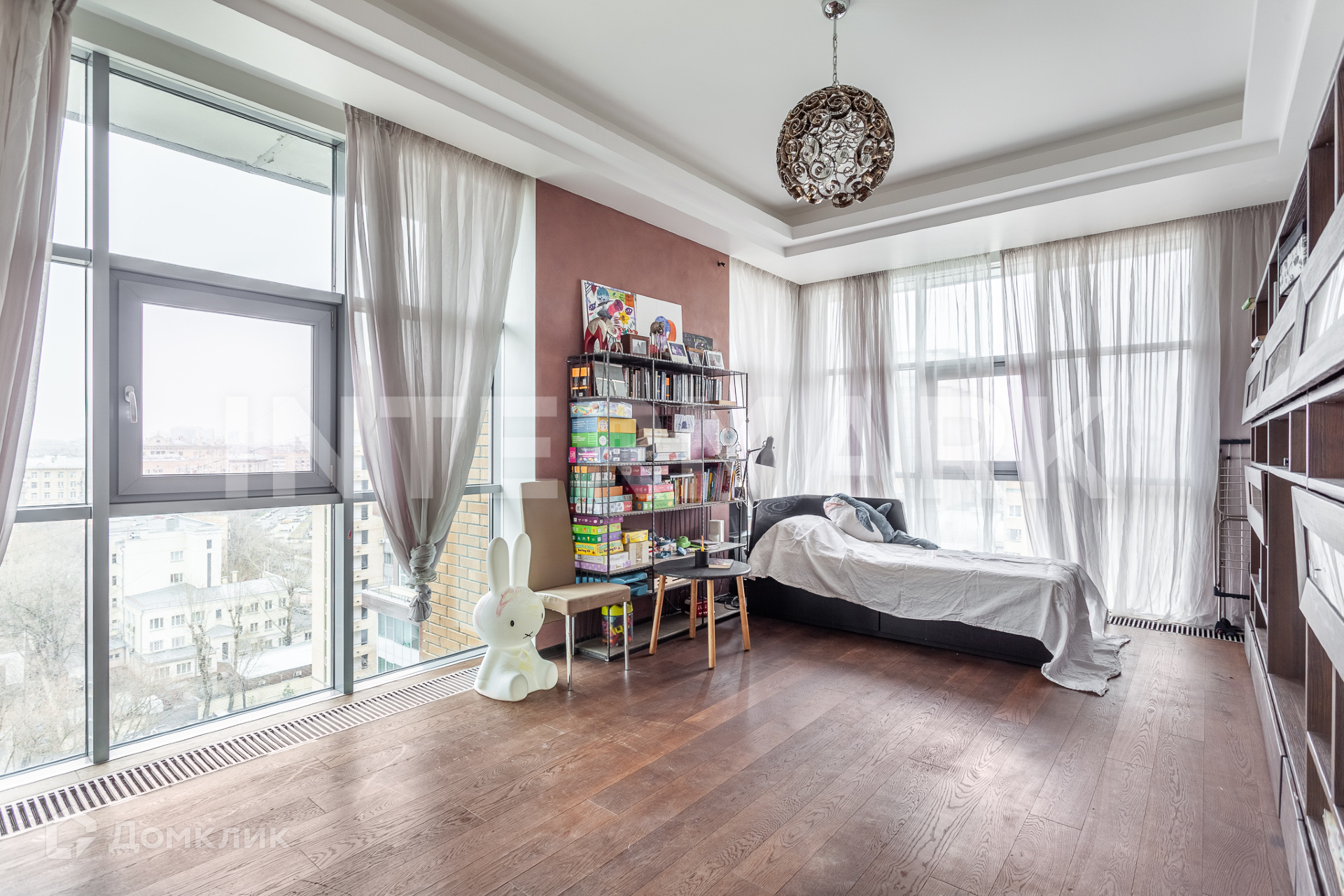 Лот 63552. Светлая видовая квартира площадью 178.1 кв.м в жилом комплексе премиум-класса. Окна в пол выходят на три стороны. Планировка включает в себя просторную кухню-гостиную, основную спальню, три детских спальни, две ванные комнаты, постирочную. Из окон открываются панорамные виды на Москва-Сити, МГУ, Новодевичий монастырь, МИД и гостиницу «Украина».