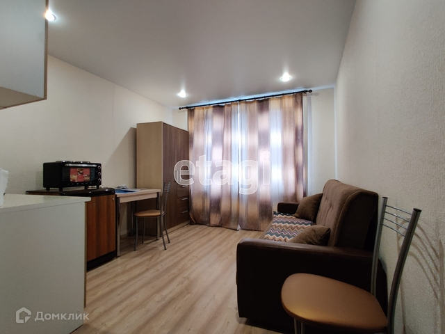 Квартира: Уютная студия на 1-м этаже 17 кв. м. В студии выполнен качественный ремонт и имеется всё что необходимо для комфортного проживания: кухонный гарнитур, плита, холодильник, стол, шкаф, диван, стиральная машинка.