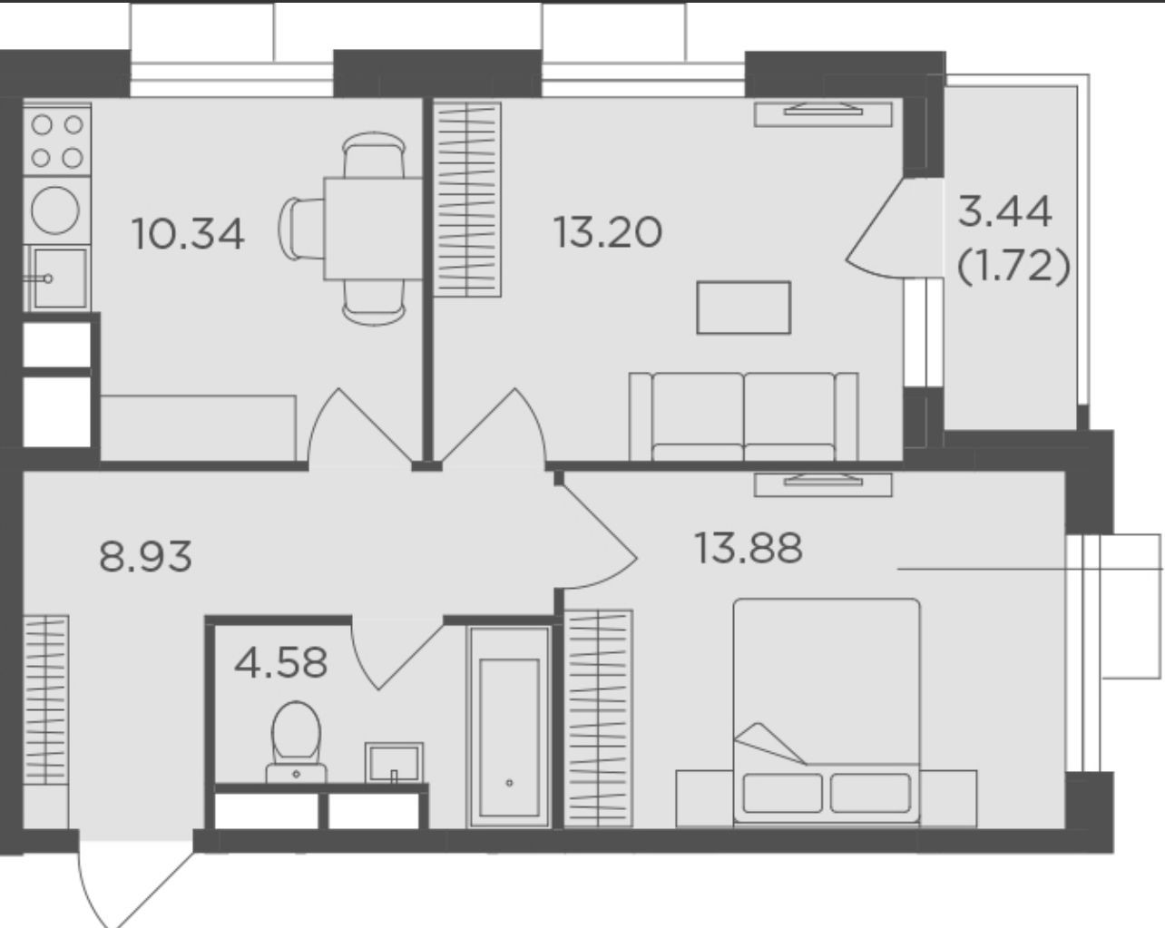 В продаже 2 комнатная квартира без отделки ЖК «TopHillS» удобной планировки в которой вы можете воплотить свои дизайнерские желания и мечты!