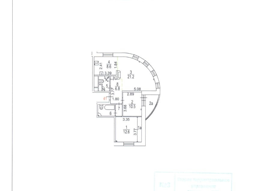 Жилая площадь 44.3 м2