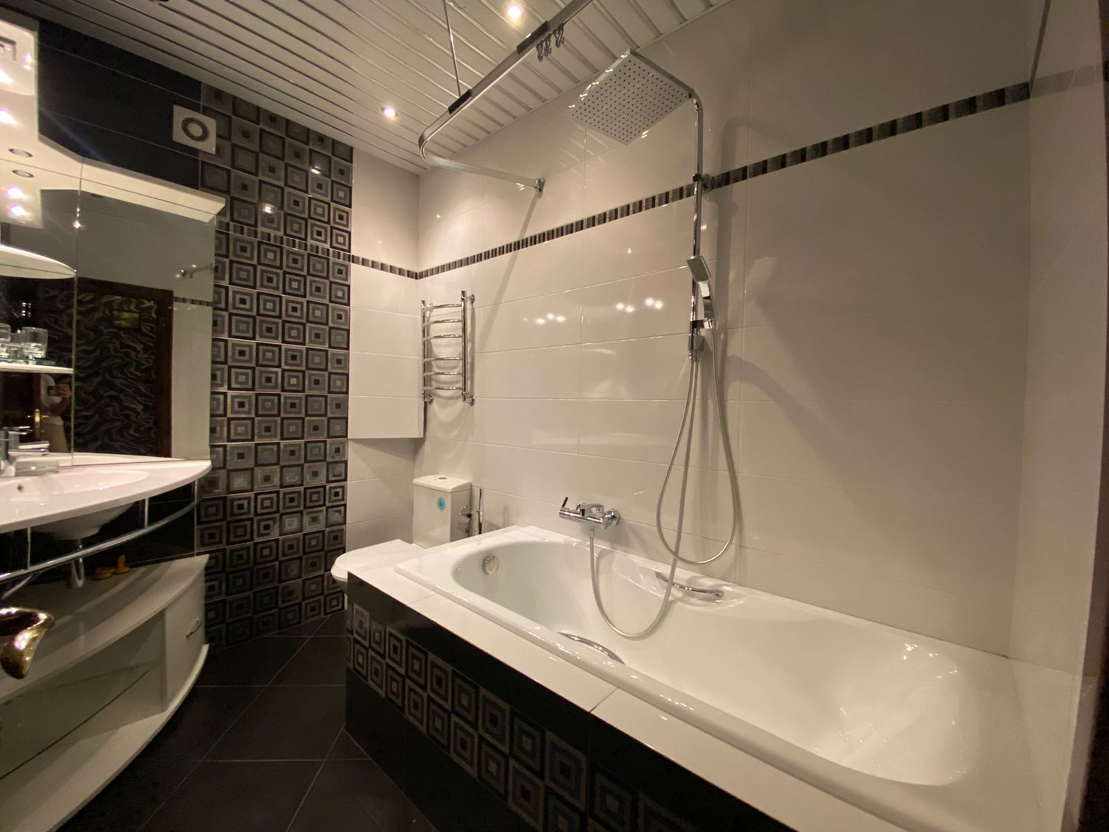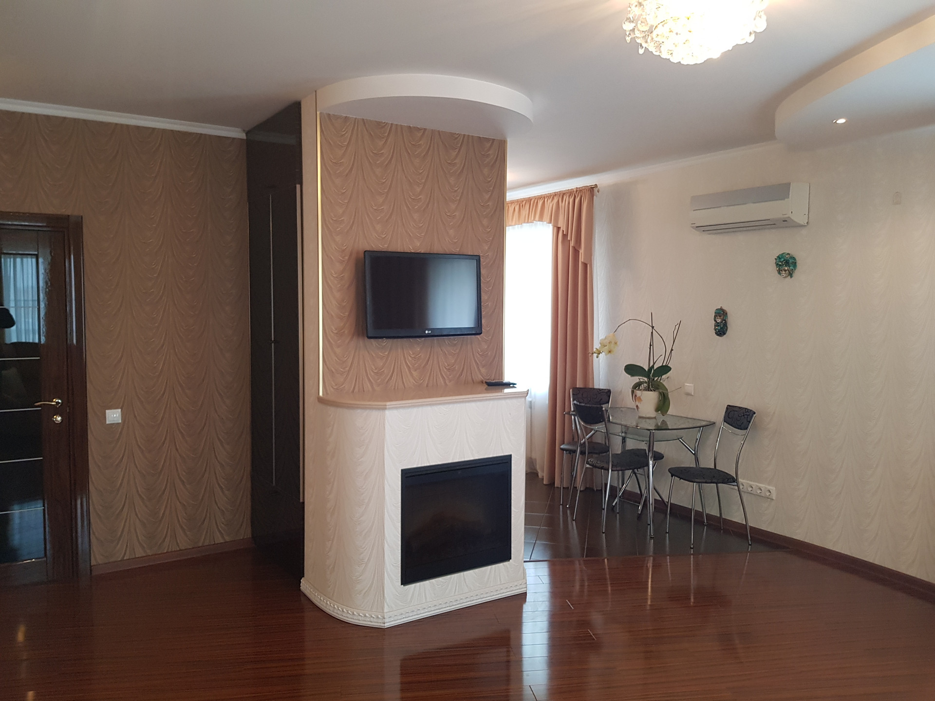 Потолок 2.8 м. Электрический камин. На полу паркетная доска, все окна заменены, хорошая входная дверь. Квартира продается с мебелью и техникой (посудомоечная машина винный шкаф, кондиционеры,).