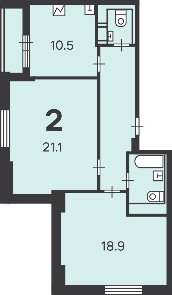 Количество комнат 2