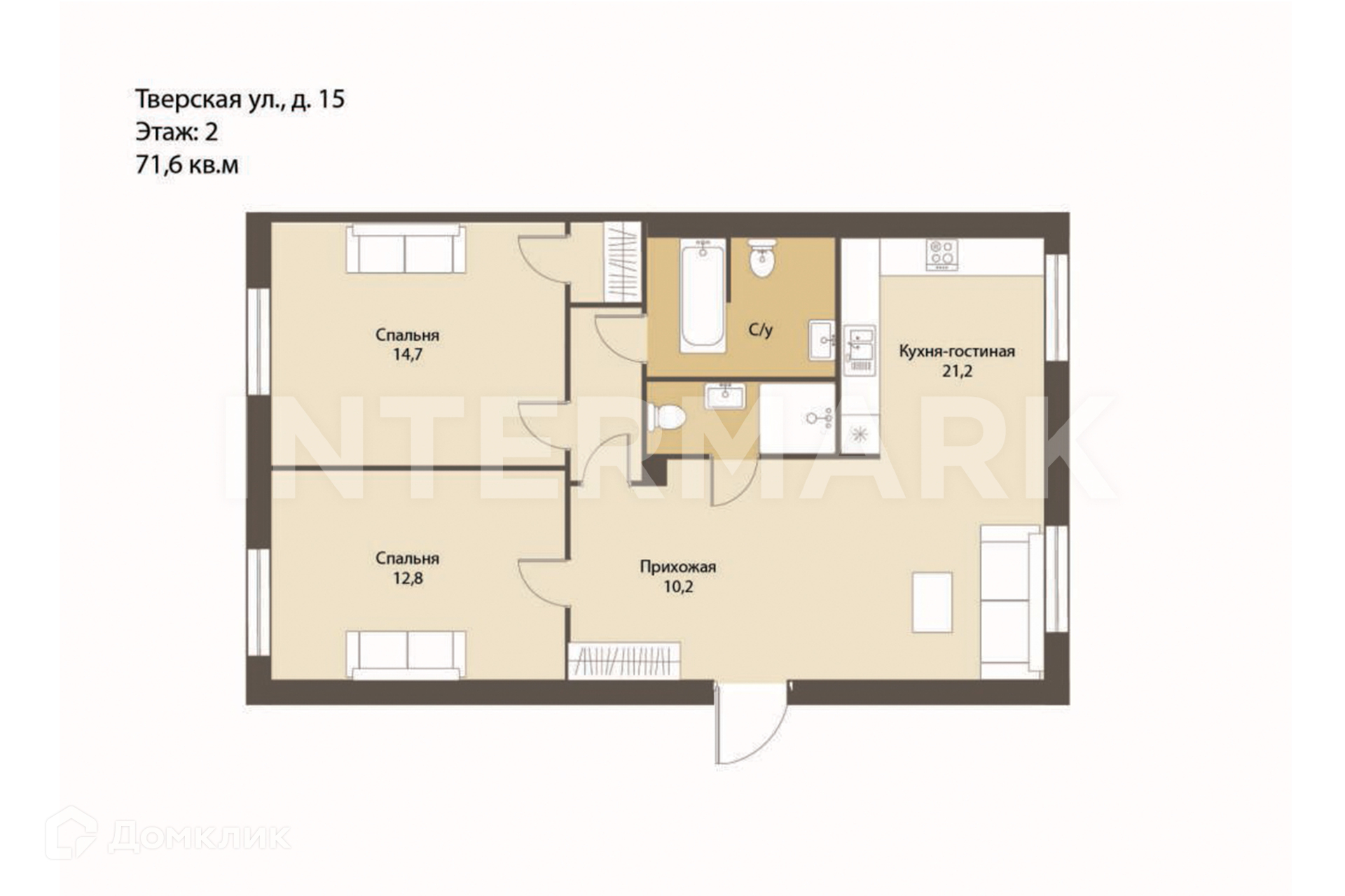 Общая площадь 71.6 м2