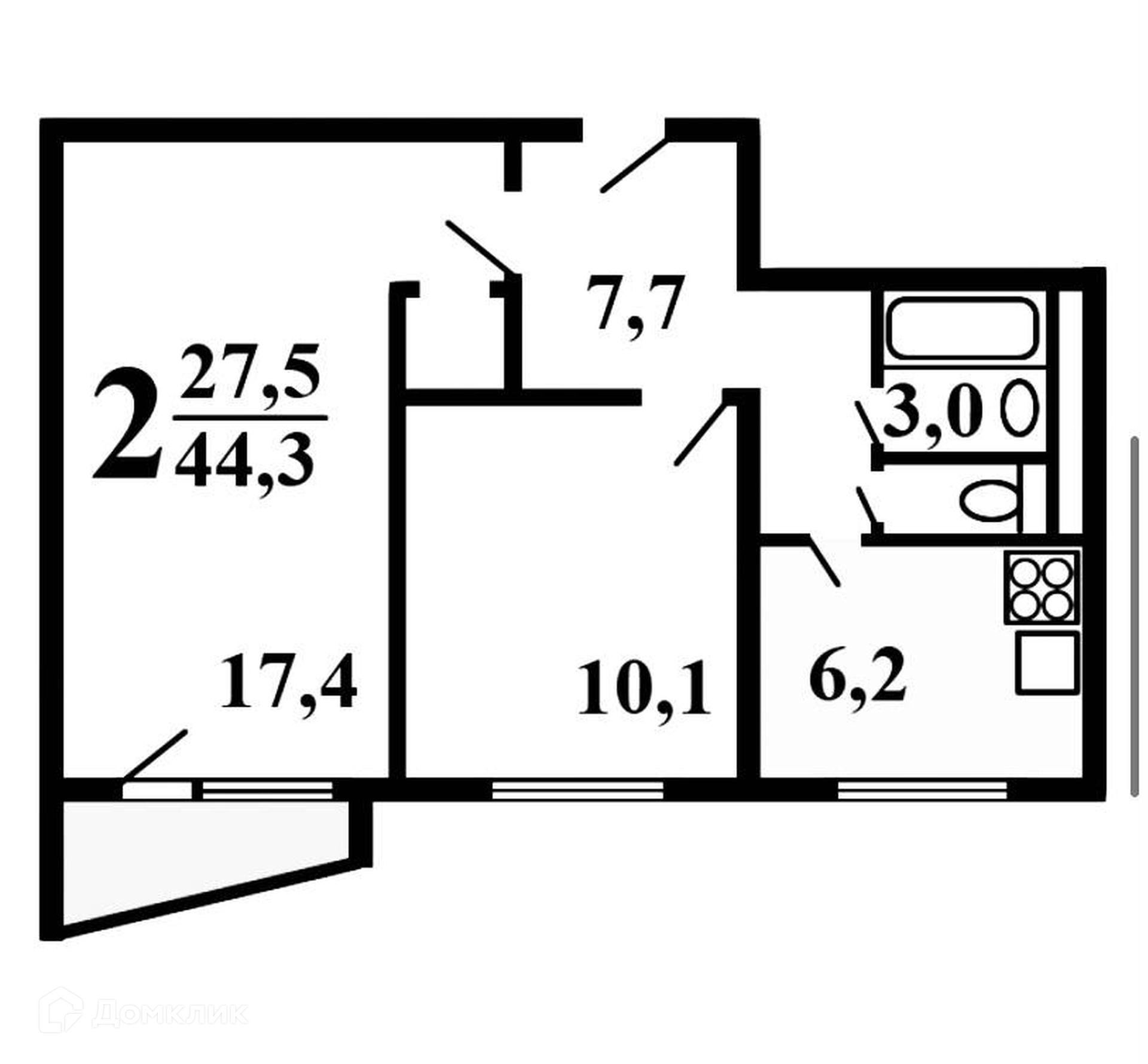 Общая площадь 44.3 м2
