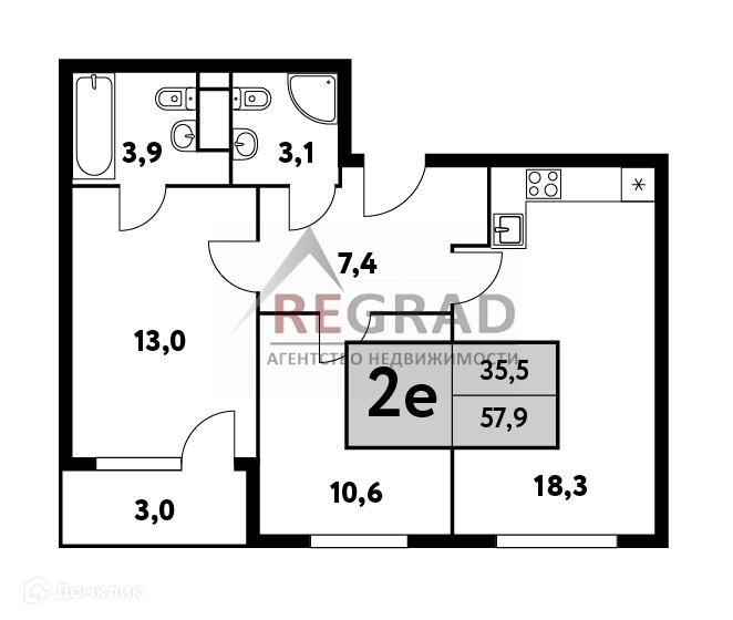 Общая площадь 57.9 м2