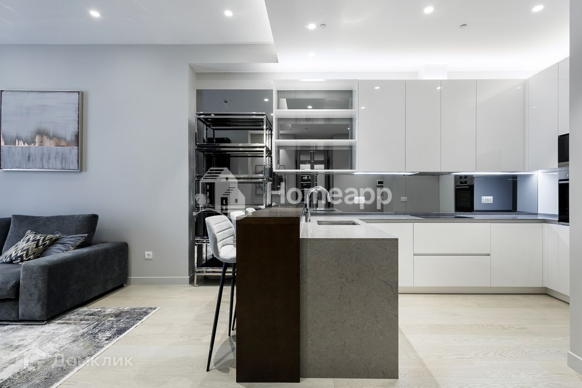 Дизайнерская отделка. Функциональная планировка: кухня-студия, совмещенная с гостиной, 1 спальня с санузлом.