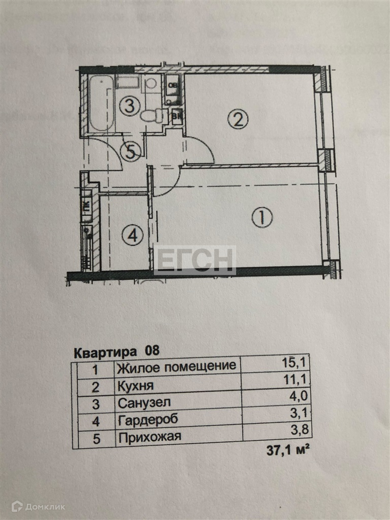 Общая площадь 38 м2