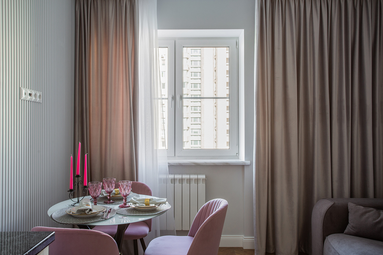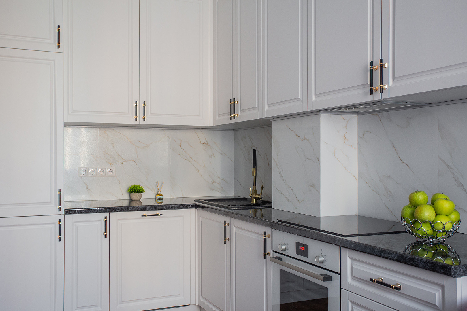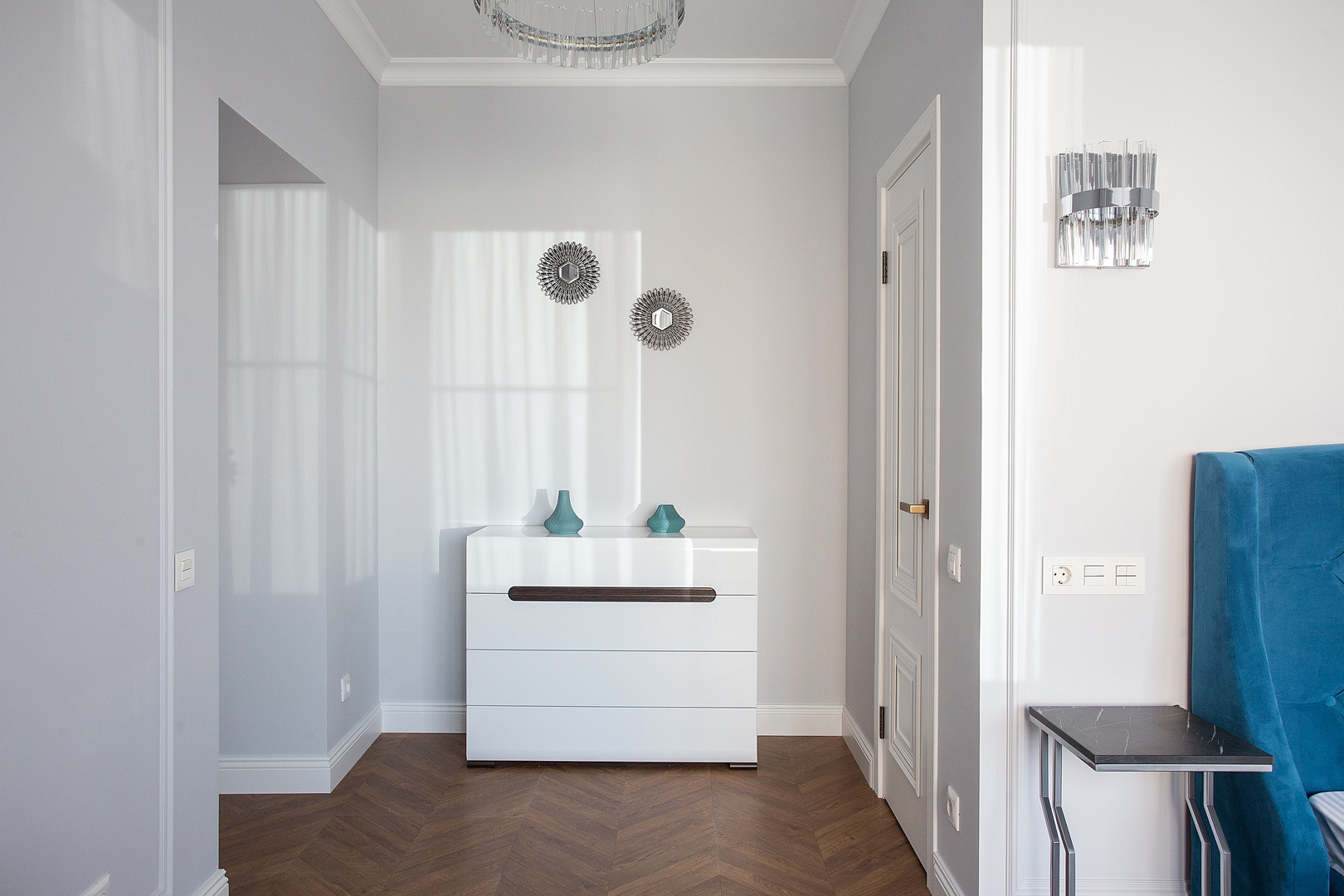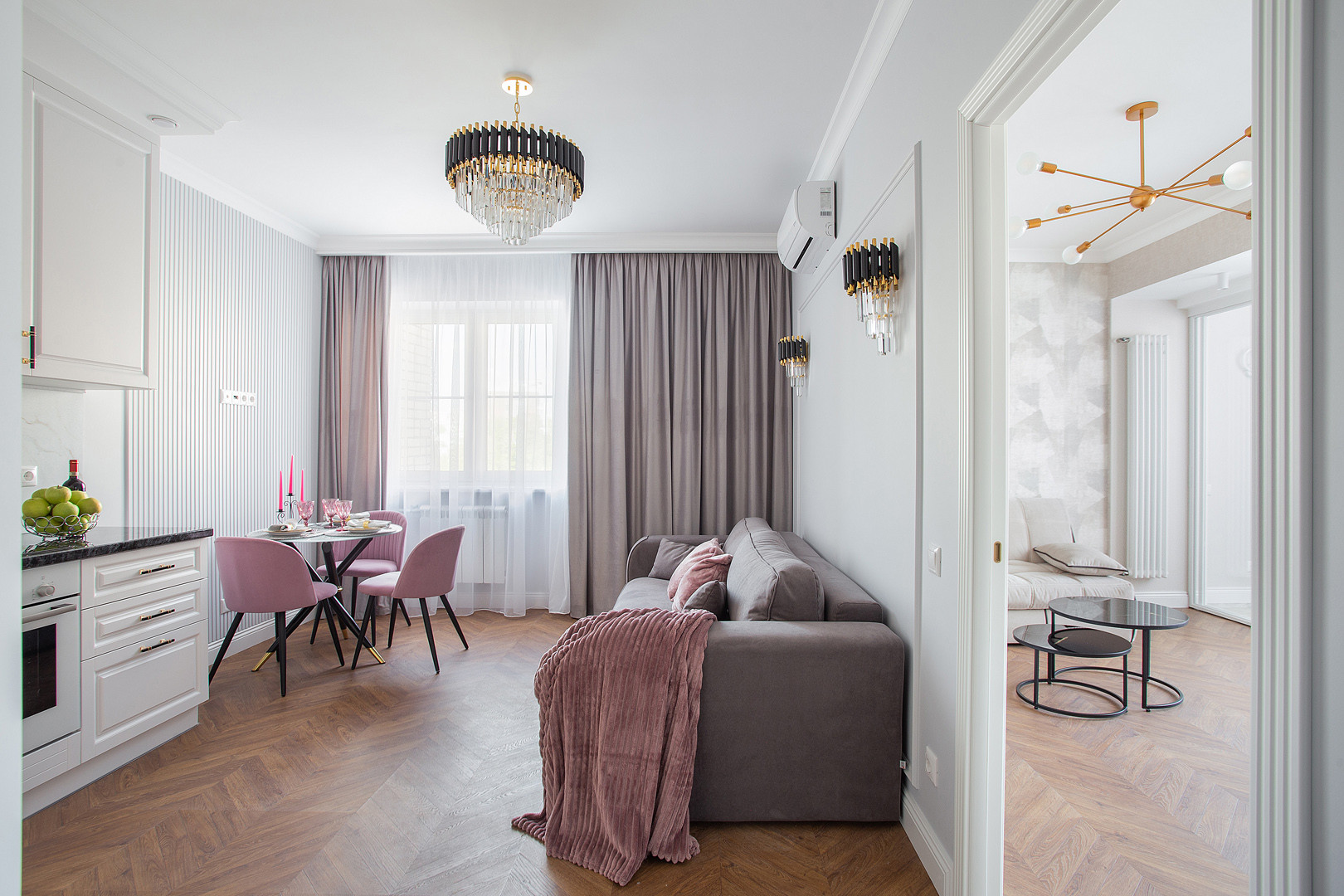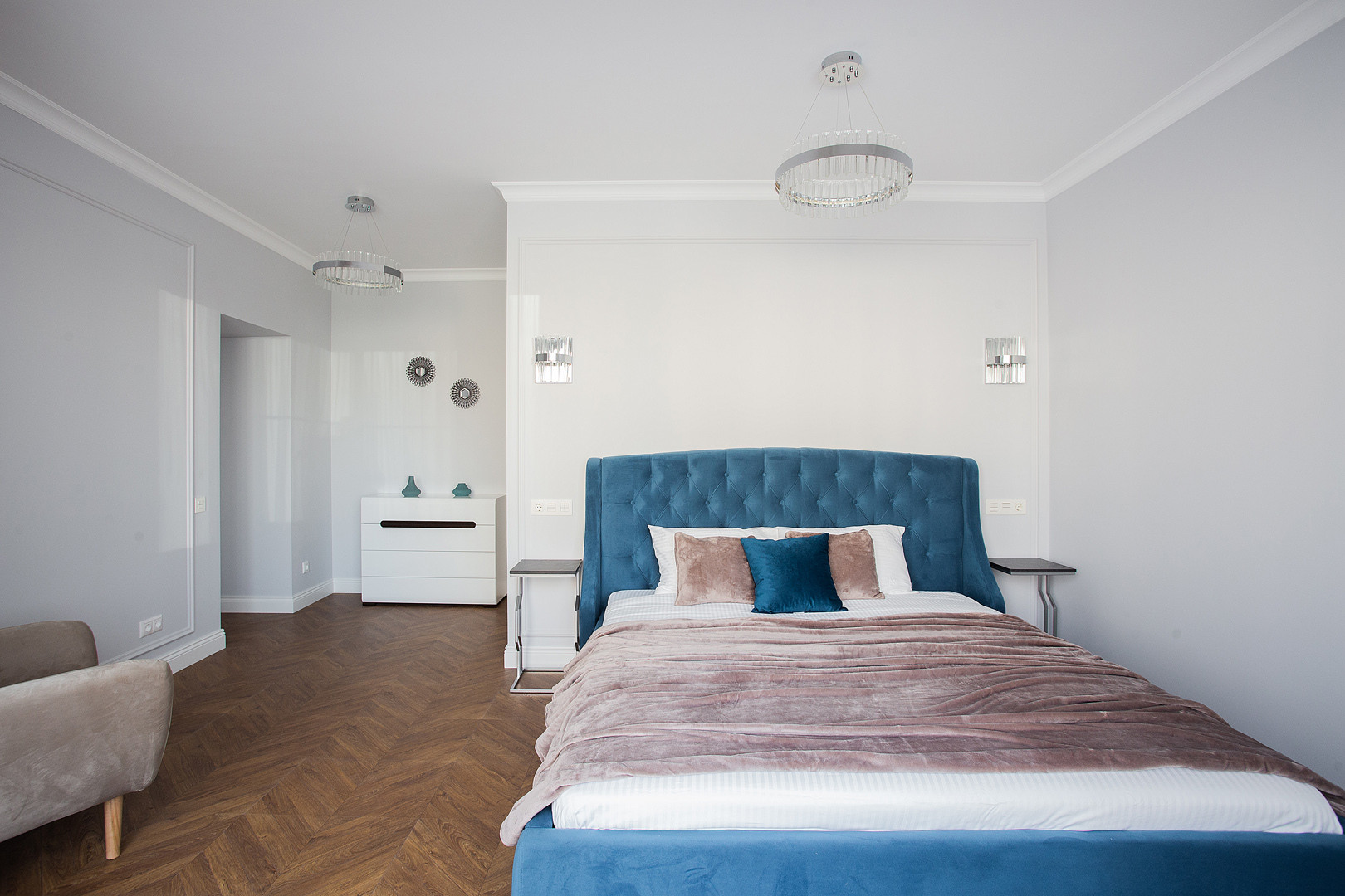 Квартира полностью укомплектована мебелью и  встроенной бытовой техникой БОШ: холодильник, посудомоечная машина, духовой шкаф, варочная панель, вытяжка, а также с любовью и с заботой к будущему собственнику подобран итальянский текстиль и предметы декора!