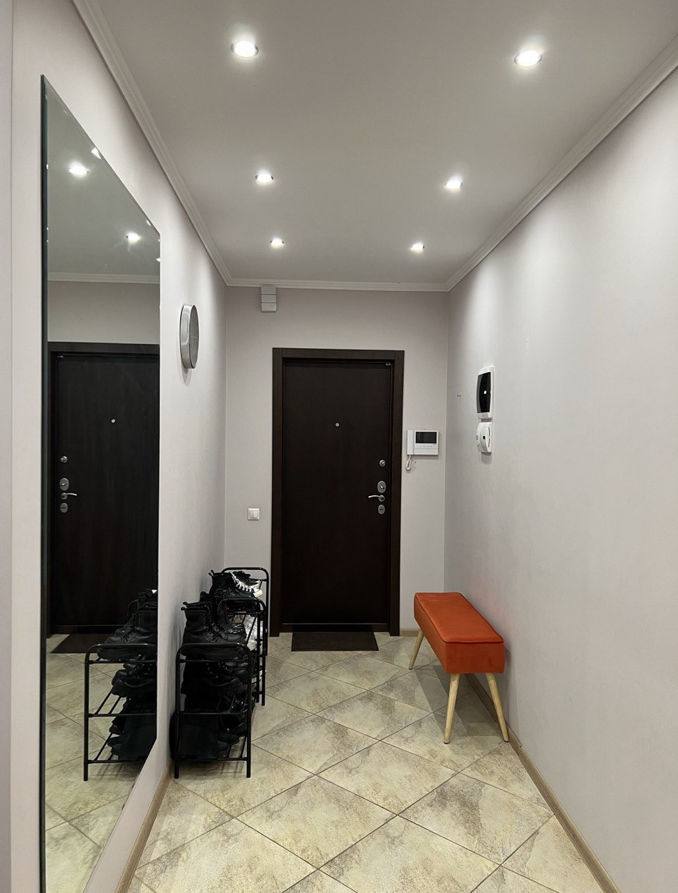 площадью 64 м2, расположена на 14 эт. 2-х подъездного 22-этажного панельного дома (улучшенной планировки), построенного в 2006 году. Окна выходят на две стороны: тихий зелёный сквер с церковью и во двор с детской площадкой.