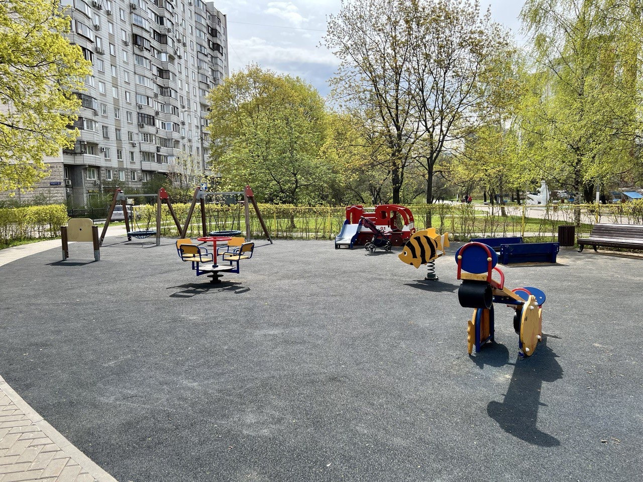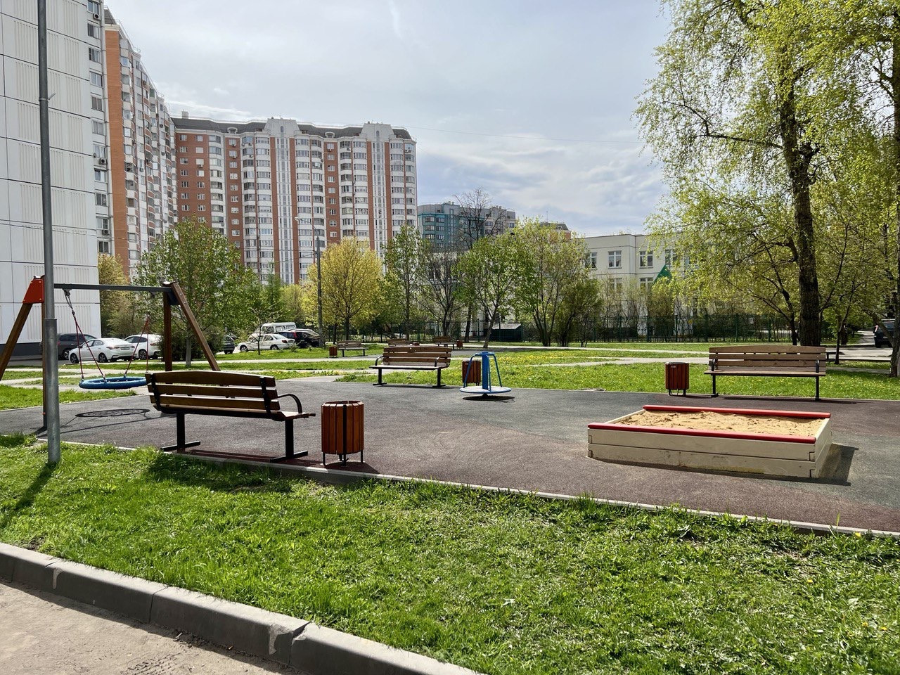 - во дворе дома детская площадка, рядом сквер с зеленой зоной и несколькими игровыми комплексами для детей и подростков