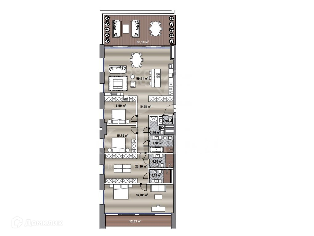 Квартира на 10 этаже общей площадью 215 кв. м.
