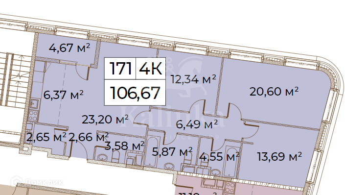 Вашему вниманию предлагается квартира на 6 этаже площадью 106,67 кв.м.