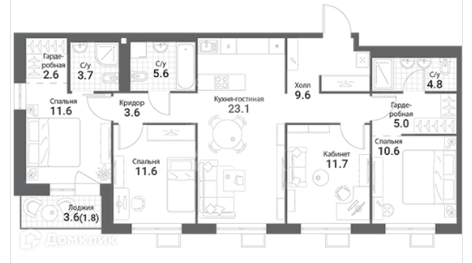 Квартира на 4 этаже площадью 105.30 кв.м