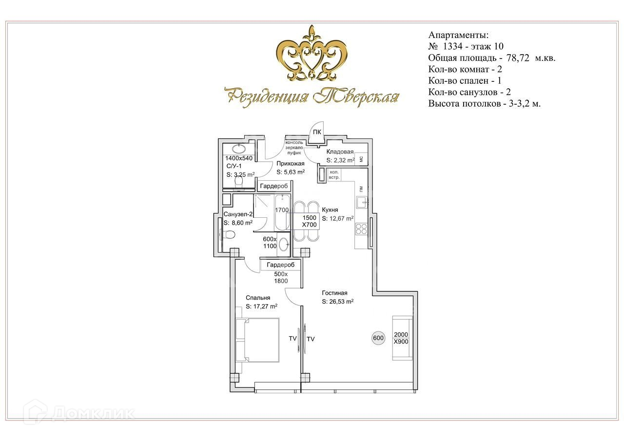 2-комнатная квартира, 78.72 м2, этаж 10 / 12, на продажу в Москве, 2-я Брестская улица, 6