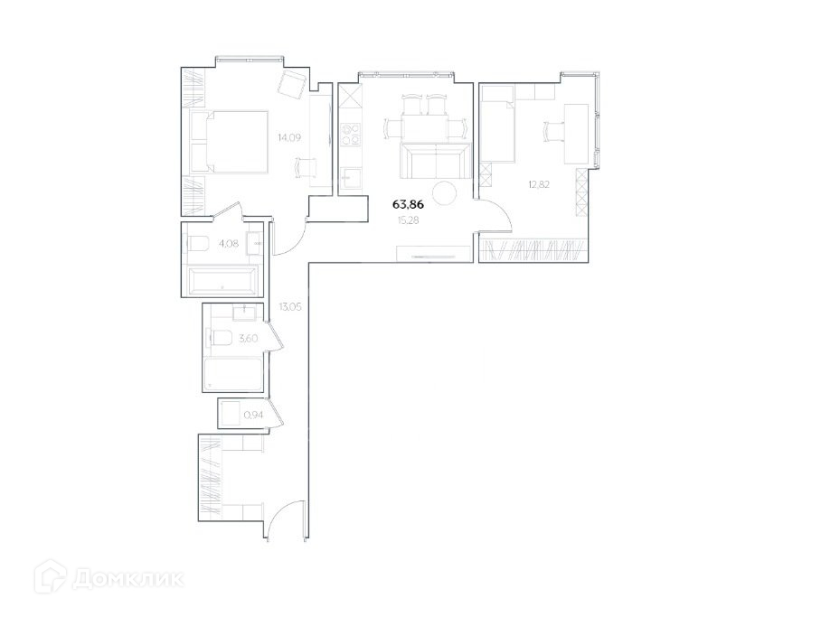 Общая площадь 63.9 м2