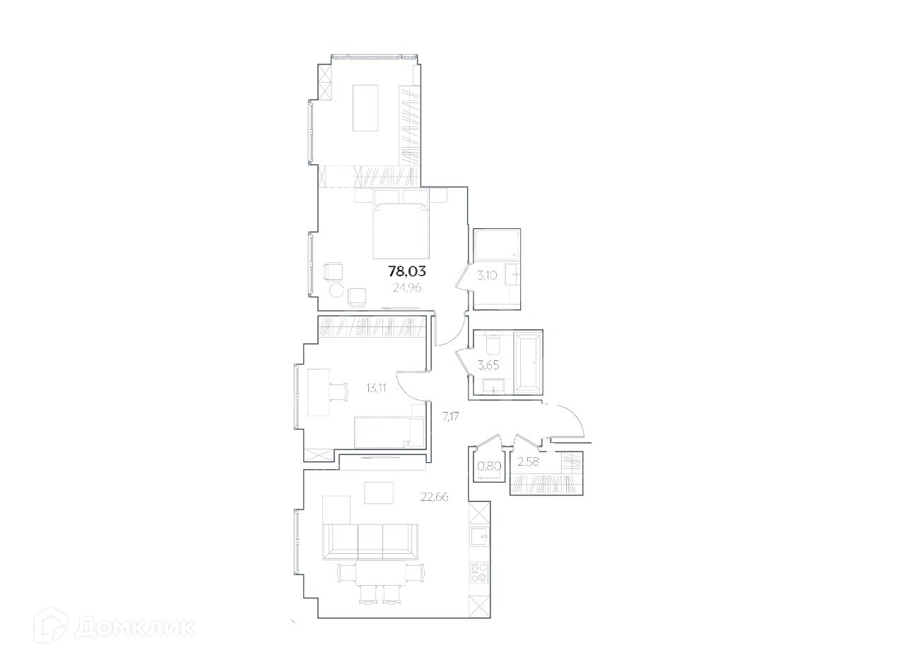 Общая площадь 78 м2
