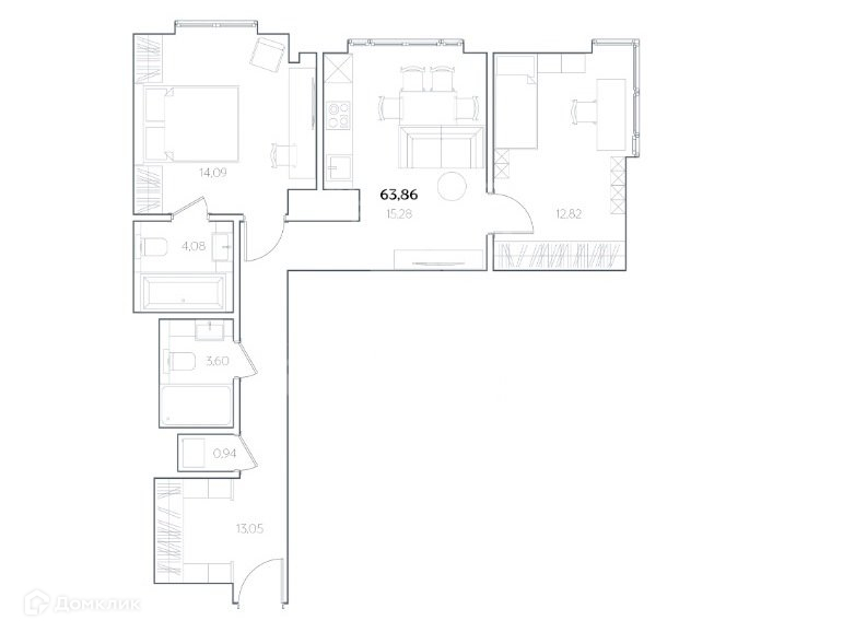 Общая площадь 63.9 м2