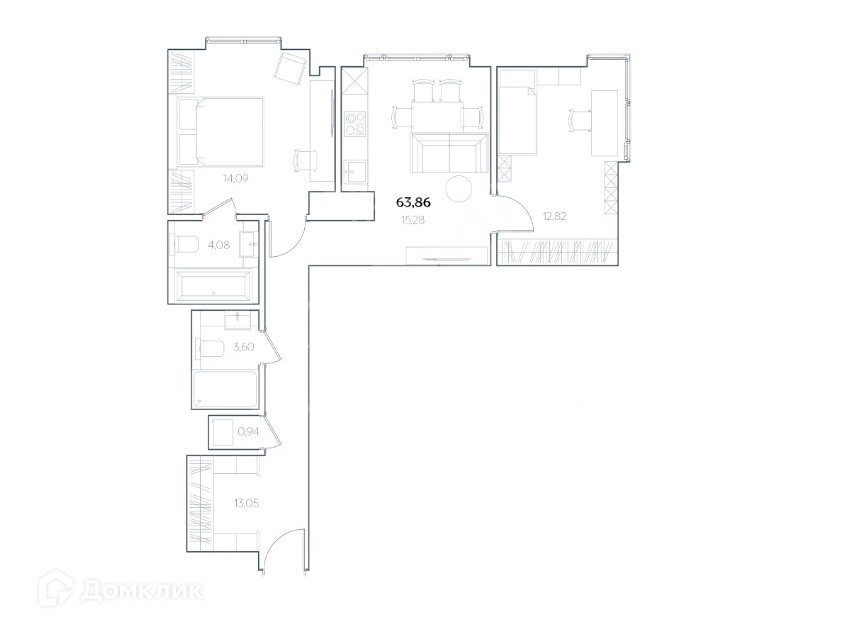 Общая площадь 63.9 м2