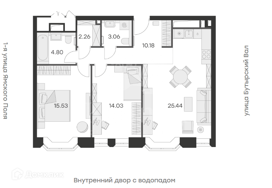 2-комнатная квартира, 75.3 м2, этаж 2 / 21, на продажу в Москве, 1-я улица Ямского Поля, 28