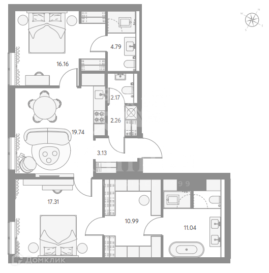 Санузел 3 совмещенный