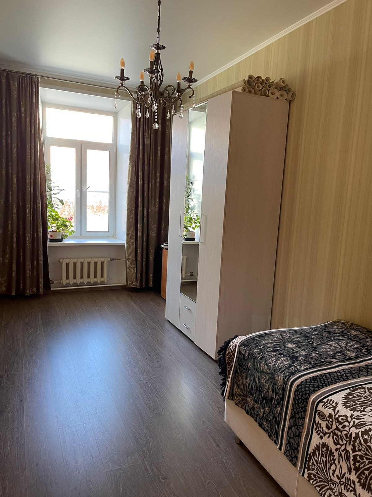 В квартире был выполнен полный капитальный ремонт, выровнены стены и новая стяжка полов (ламинат), установлены новые чугунные радиаторы, стеклопакеты, заменена сантехника и электропроводка. Три комнаты отдельные (изолированные) и одна смежная (проходная) с выходом из кухни (гостиная-столовая). Два санузла и дополнительно душевая.