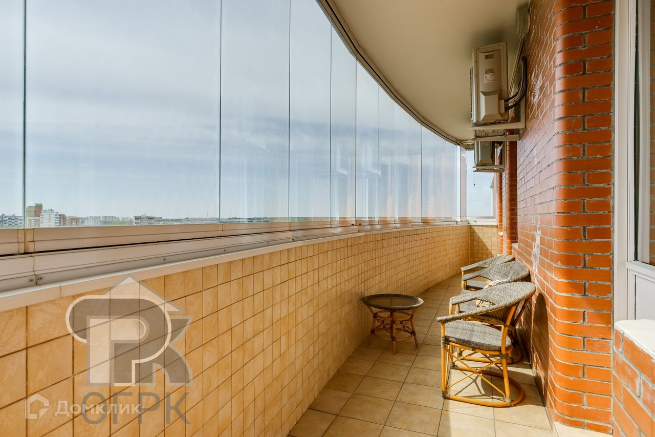 Огромная лоджия с плетеной мебелью позволит Вам удобно разместиться и насладится открывающимися видами с высоты 15-го этажа.