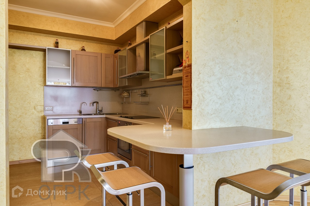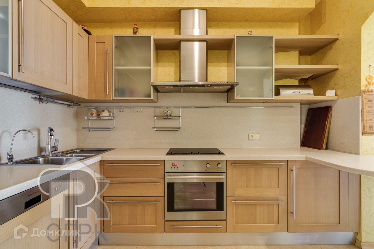 Кухня со всей необходимой мебелью, в комплекте с немецкой бытовой техникой Küppersbusch являющейся одним из брендов премиум-класса и состоящей из посудомоечной машины, духового шкафа, варочной панели, вытяжного шкафа.