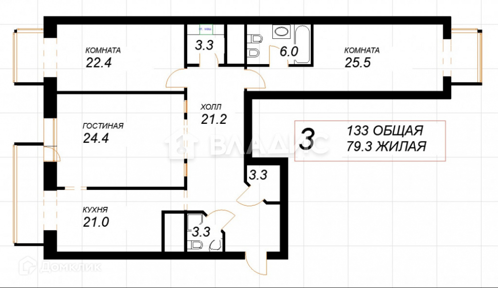 Общая площадь 133 м2