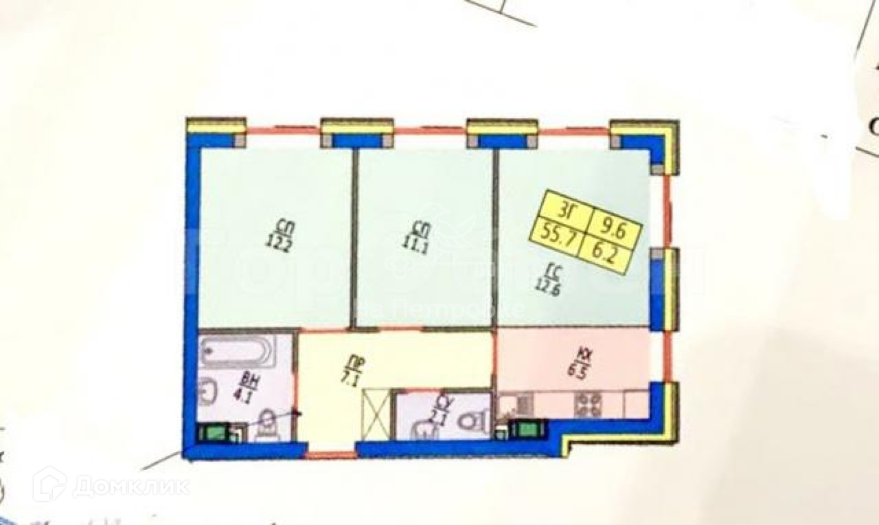 Общая площадь 55.7 м2