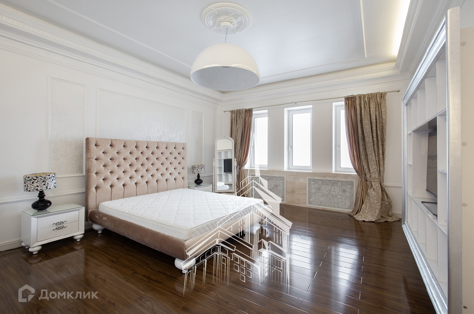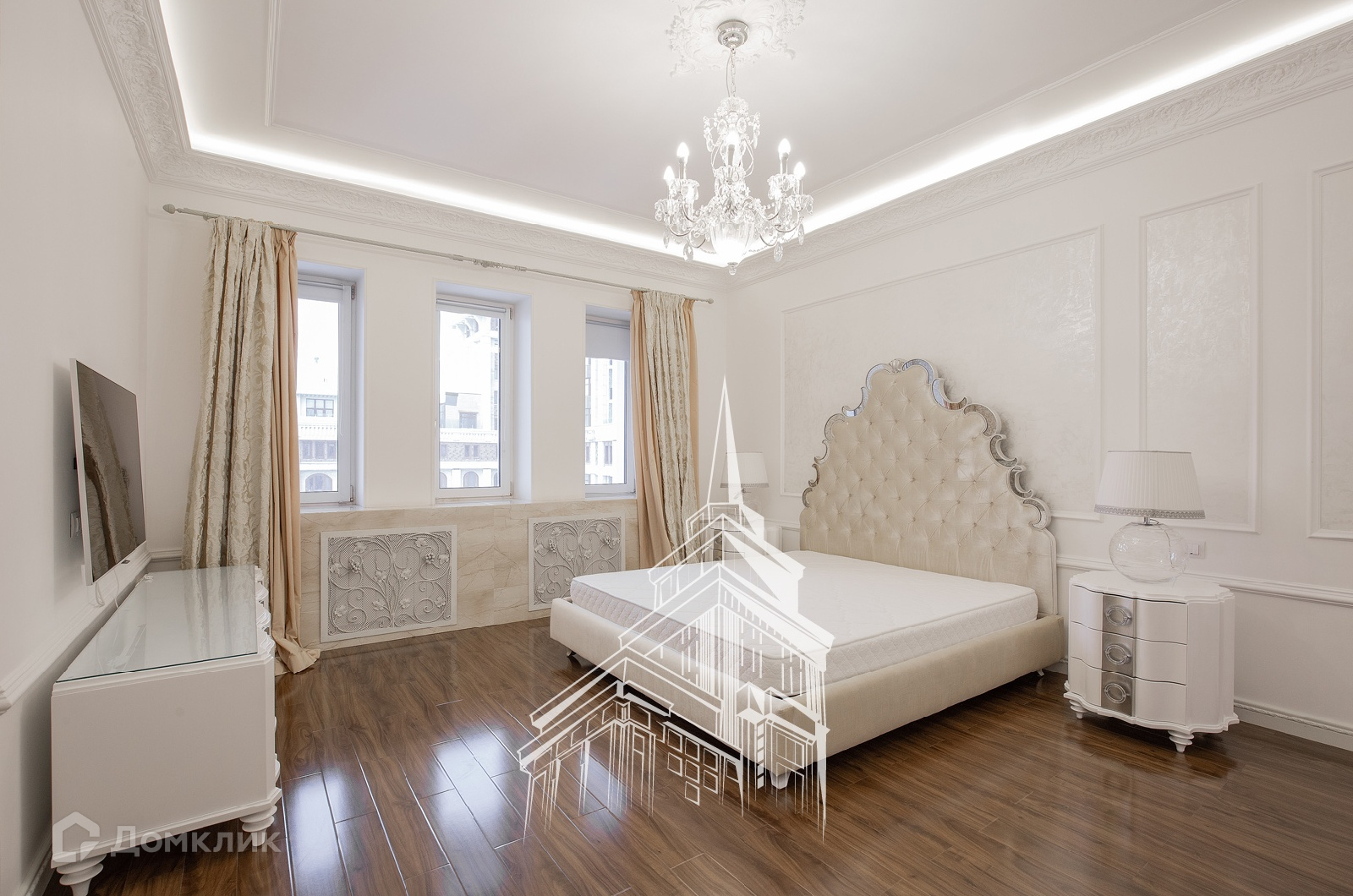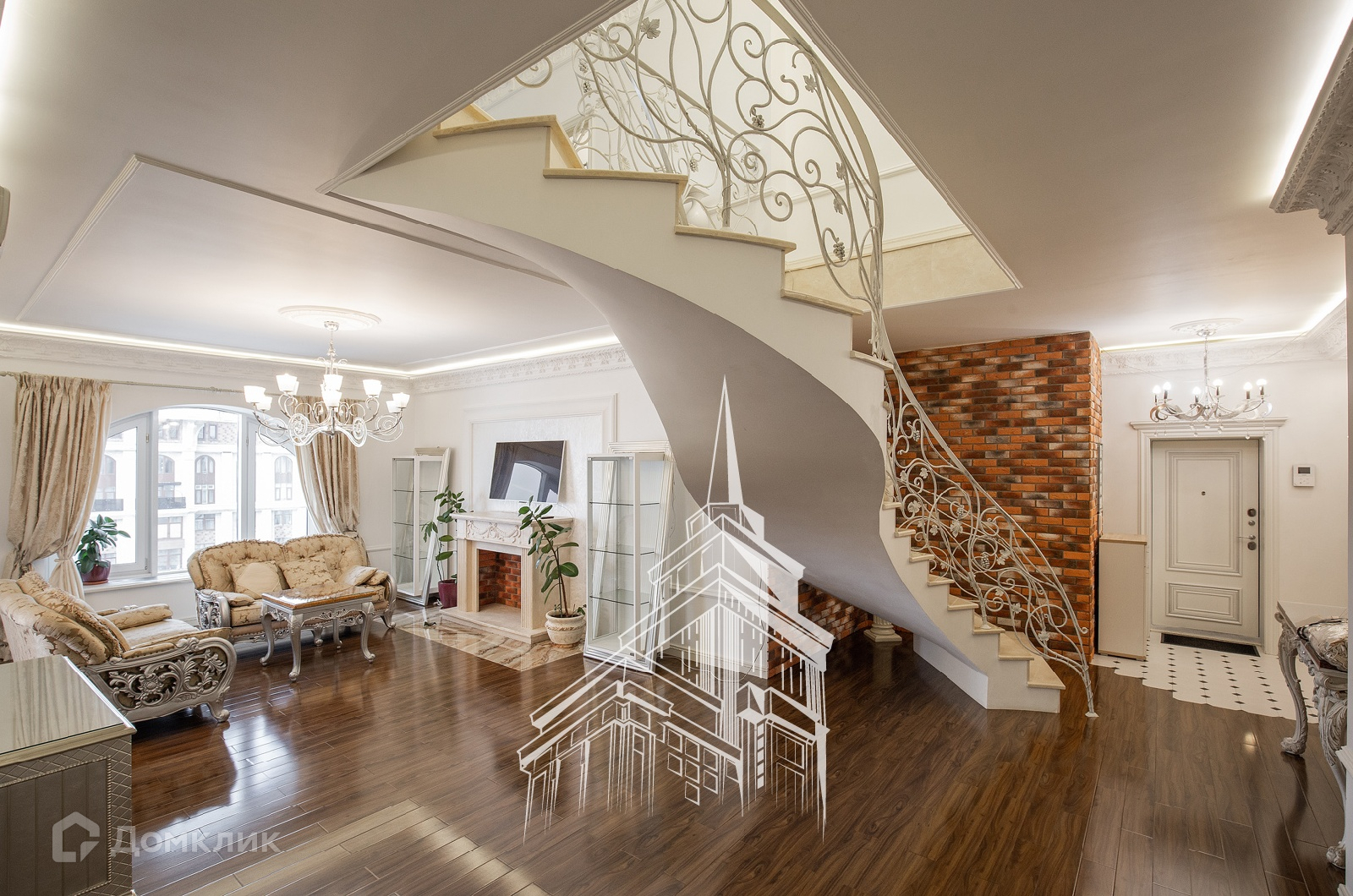 ЛОТ 24477 Т Продажа роскошной 5-комнатной, двухуровневой квартиры площадью 245 кв.м. Метро Сокол, 10 минут пешком. Чапаевский переулок, дом 3. ЖК Триумф Палас. В квартире выполнена новая, дорогостоящая отделка в нео-классическом стиле с использованием экологических материалов. Пол мрамор, паркетная доска из массива дерева ценных пород, люстры богемское стекло, фарфор. Мебель - Италия, сделанная на заказ. Имеется вся необходимая бытовая техника производителя Mielle. Кондиционирование и приточно-вытяжная вентиляция, подогрев полов. Из окон открываются потрясающие, панорамные виды на Москву.