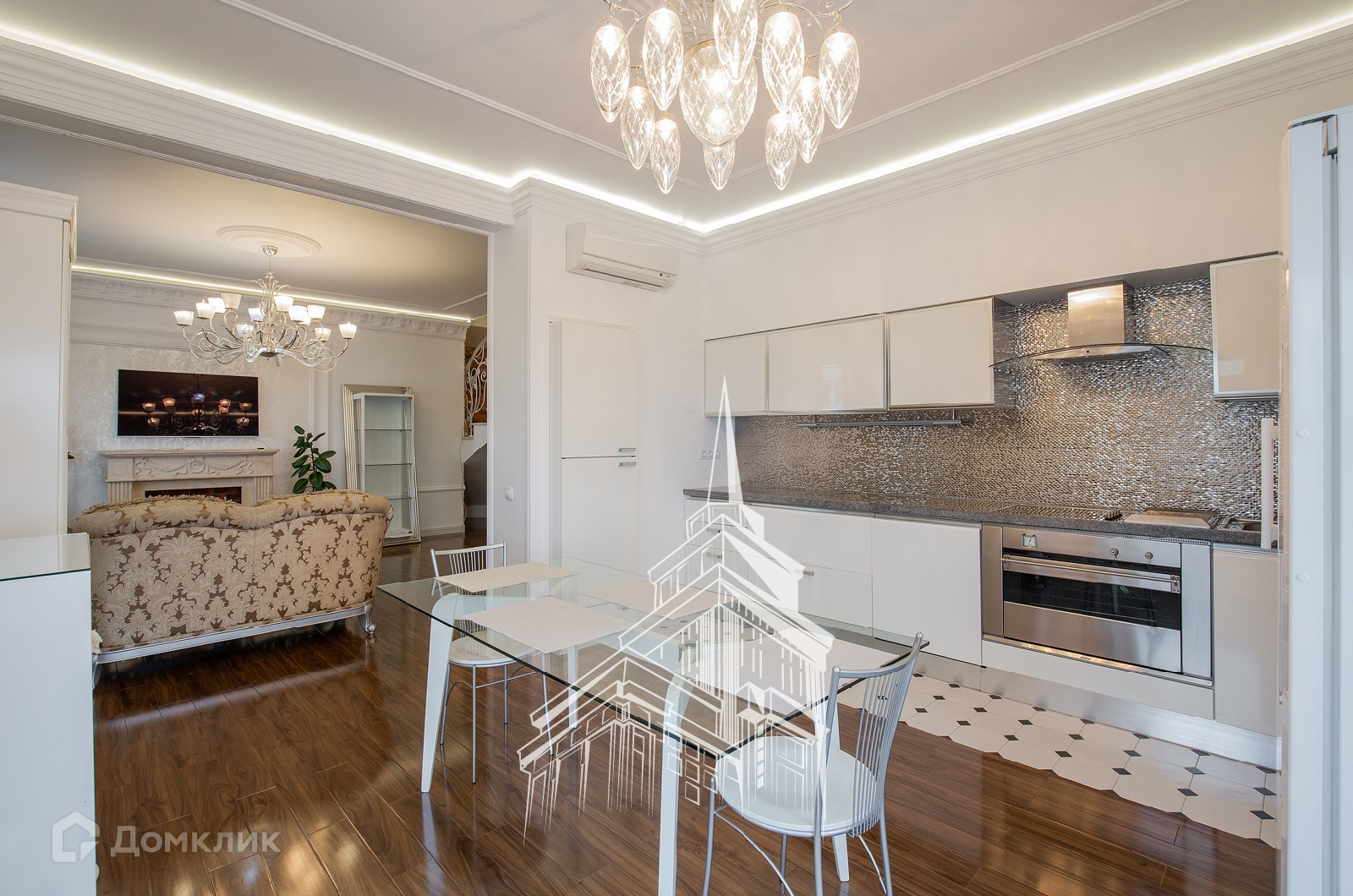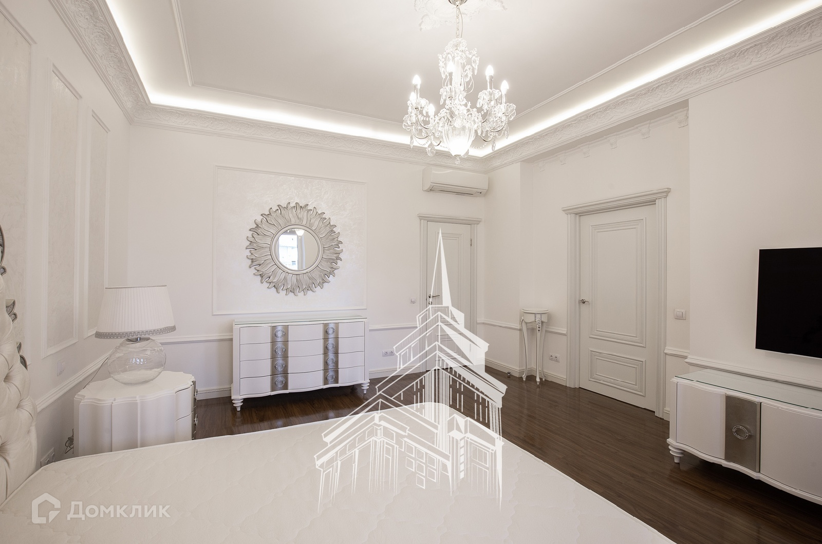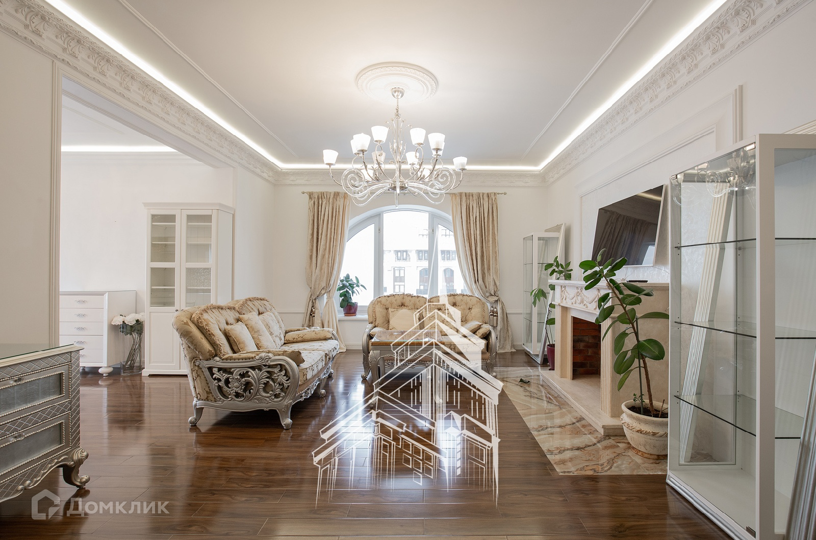 ЛОТ 24477 Т Продажа роскошной 5-комнатной, двухуровневой квартиры площадью 245 кв.м. Метро Сокол, 10 минут пешком. Чапаевский переулок, дом 3. ЖК Триумф Палас. В квартире выполнена новая, дорогостоящая отделка в нео-классическом стиле с использованием экологических материалов. Пол мрамор, паркетная доска из массива дерева ценных пород, люстры богемское стекло, фарфор. Мебель - Италия, сделанная на заказ. Имеется вся необходимая бытовая техника производителя Mielle. Кондиционирование и приточно-вытяжная вентиляция, подогрев полов. Из окон открываются потрясающие, панорамные виды на Москву.