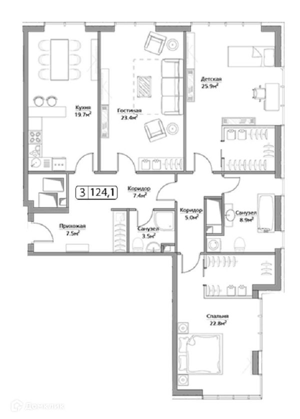 Общая площадь 126 м2