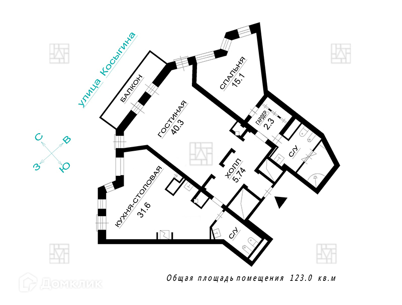 Общая площадь 123 м2