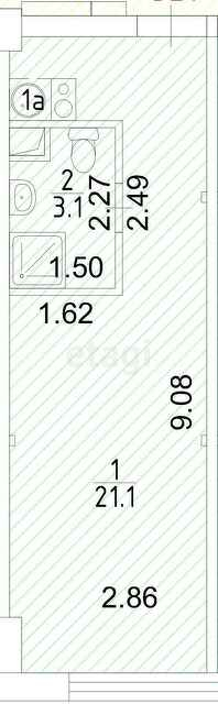 Общая площадь 21 м2