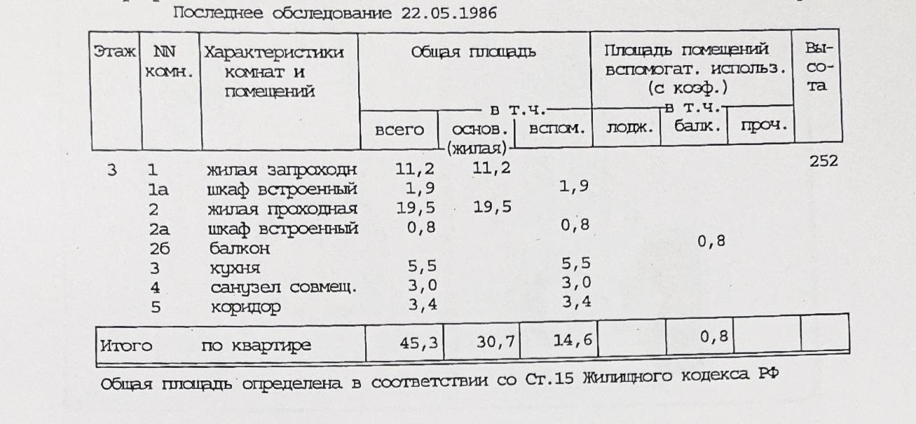 Общая площадь 45.3 м2