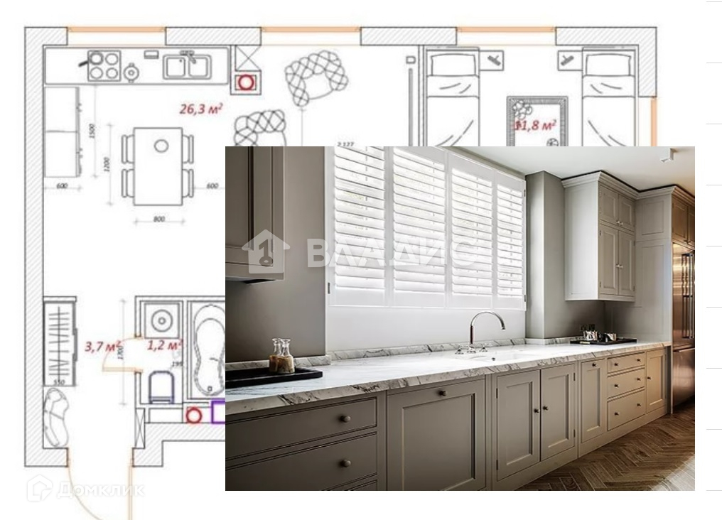 Площадь кухни 12 м2